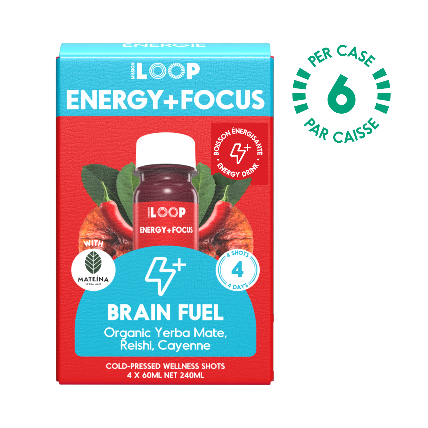 Yerba Mate biologique, Reishi, Cayenne - Réalisé avec Matéine, le partenaire idéal pour augmenter la visibilité des produits sur tablette! - 70mg de caféine naturelle, aka Yerba Maté de Matéina - Améliore la concentration - Énergie sans crash