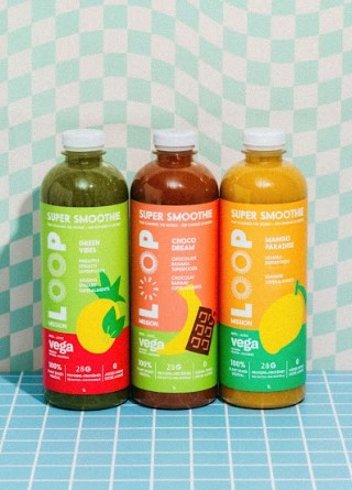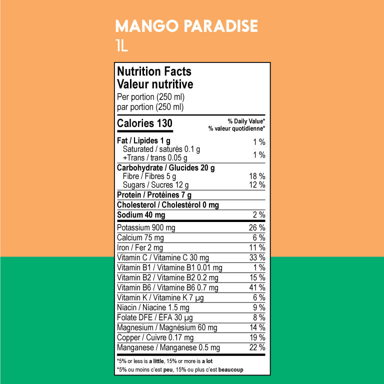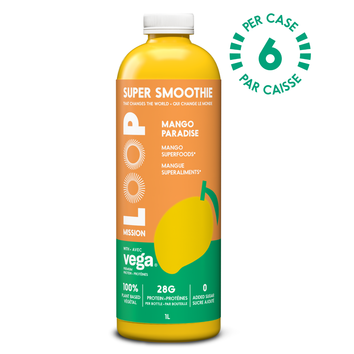 Eau filtrée, Banane (vitamine C), Mangue, Jus de lime et/ou citron**, Poudre VÉGA®* (protéines de pois*, amidon de pois*, gomme arabique*, fibre de pois*, poudre d'épinard*, poudre de luzerne graminées*, extrait de feuille de stévia*, gomme de guar*, poudre de spiruline*, gomme de xanthane, poudre de chou frisé*, extrait de romarin, mélange de fruits* (poudre de jus de cerise des Antilles*, poudre de jus de canneberge*, poudre de bleuet*) poudre de brocoli*, arôme naturels), Curcuma, Sel de mer, Arôme naturel, Gomme de Xanthane (de source naturelle).