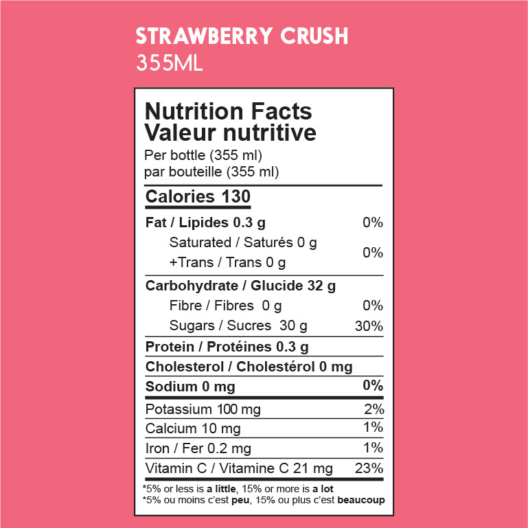 Eau filtrée, Jus de fraise*, Jus de citron*, Sucre de canne biologique.