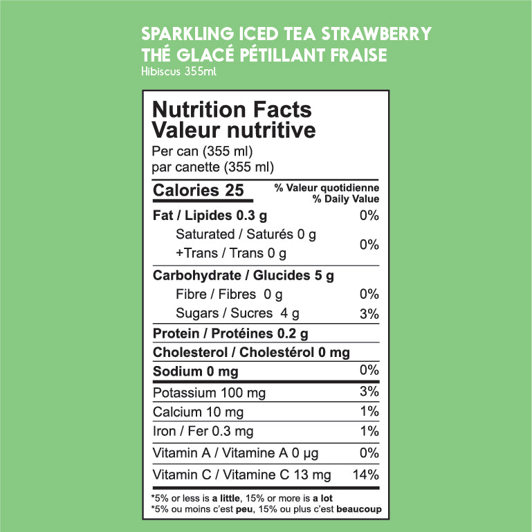 Hibiscus infusé (eau filtrée, fleurs d'hibiscus), Jus de fraise, Jus de citron, Extrait de feuilles de stevia.